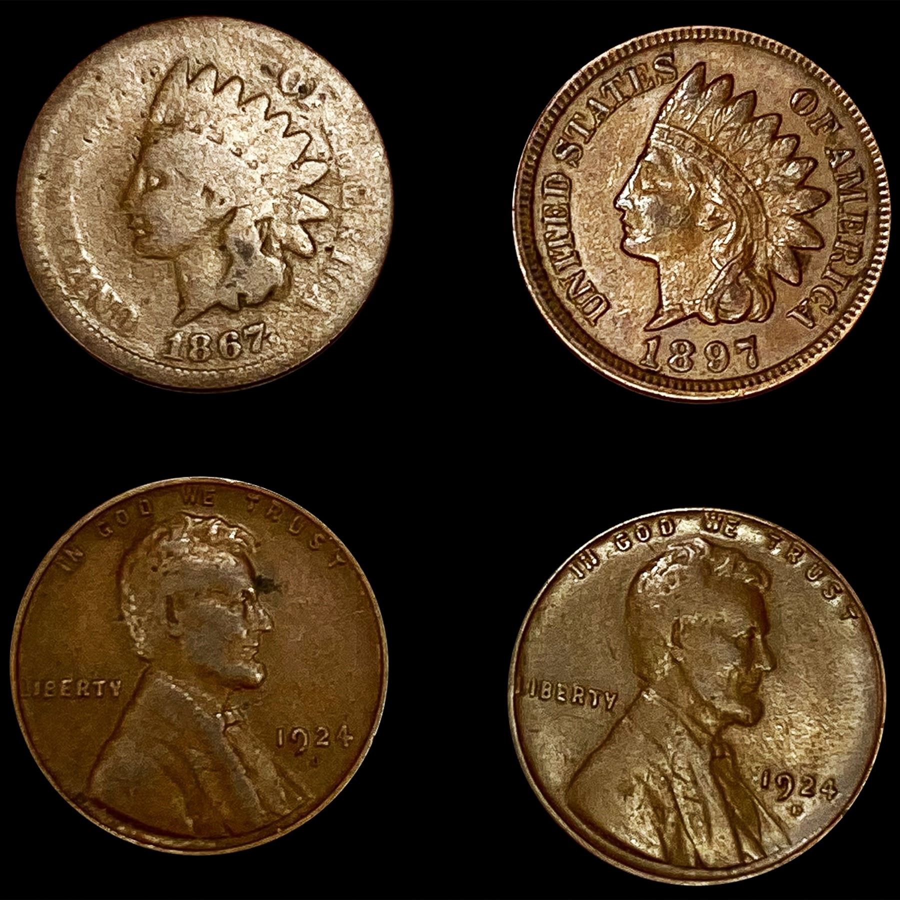 (4) Misc Cents (1867, 1897, (2) 1924-D) NICELY CI