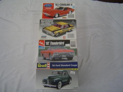 Lindberg 72162 1/25 '63 Cougar II, Lindberg 72174 1/25 '64 Dodge 330 Super Stock, AMT 30081 1/24 '62 Thunderbird, Revell 85-2387 1/25 '40 Ford Standard Coupe