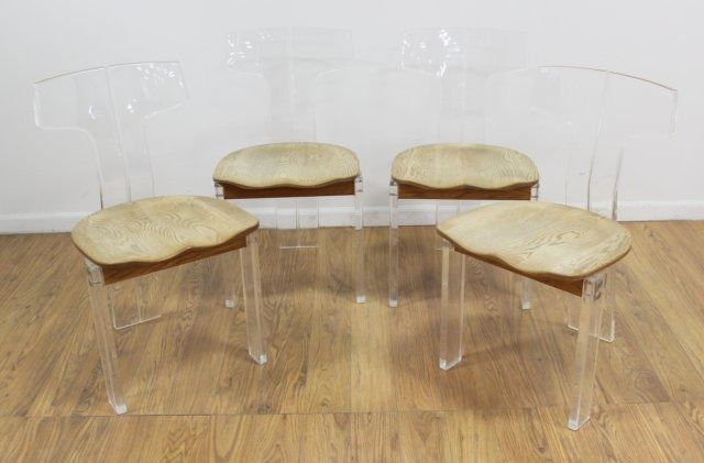 Lucite back and legs with oak feet. Approx. 32 1/2" H x 16" W.