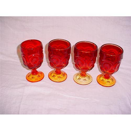 Four lovely amberina Moon and Star goblets, 6 inches high in excellent condition!