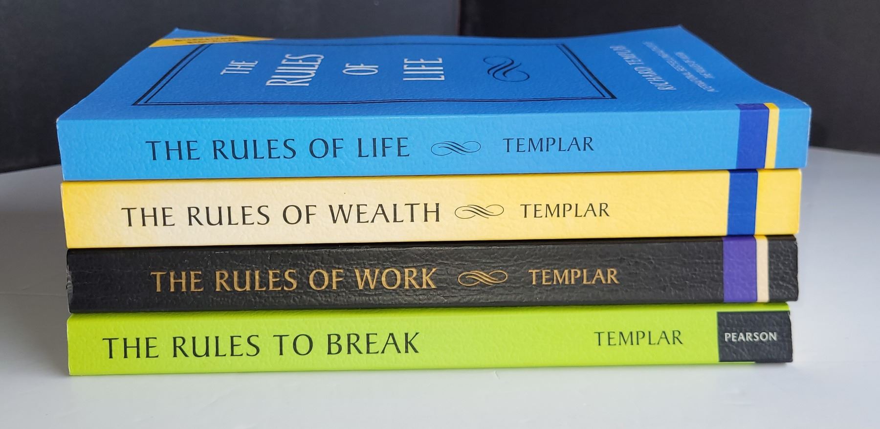 Richard Templars Rules of Work, Rules of Wealth,Rules of Life, Rules to Break. Two have some underlining in pencil