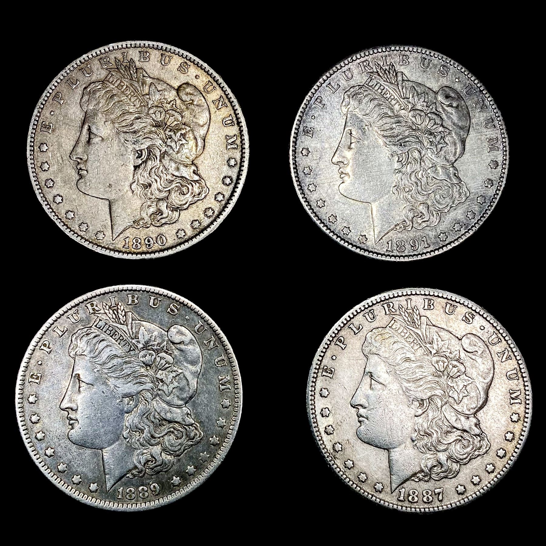[4] Morgan Silver Dollars [1887-S, 1889-O, 1890-S,