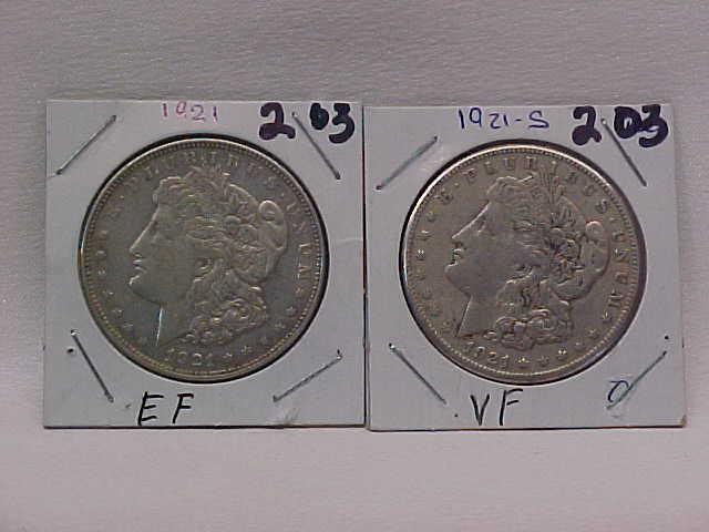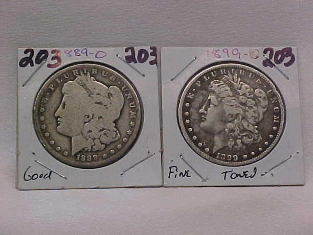 4 Morgan $: 1889-O G, 1899-O F toned, 1921 EF, 1921S VF