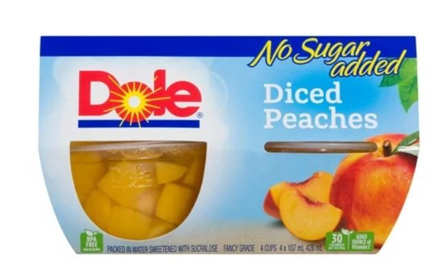 4 NEW 4 PACKS OF DOLE DICED PEACHES 107ML PER CUP