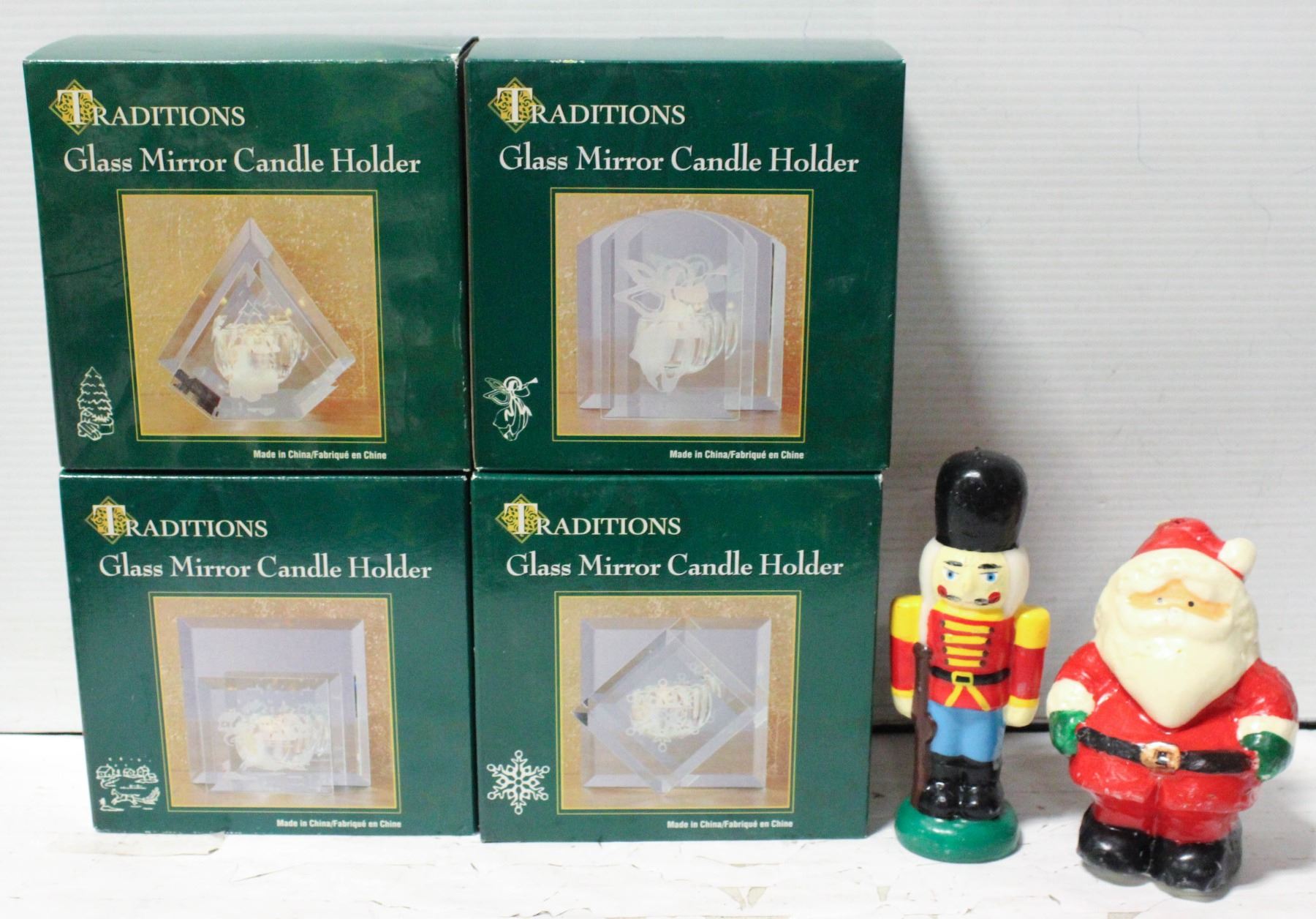 4 NEW CANDLE HOLDERS & CANDLES - ESTATE