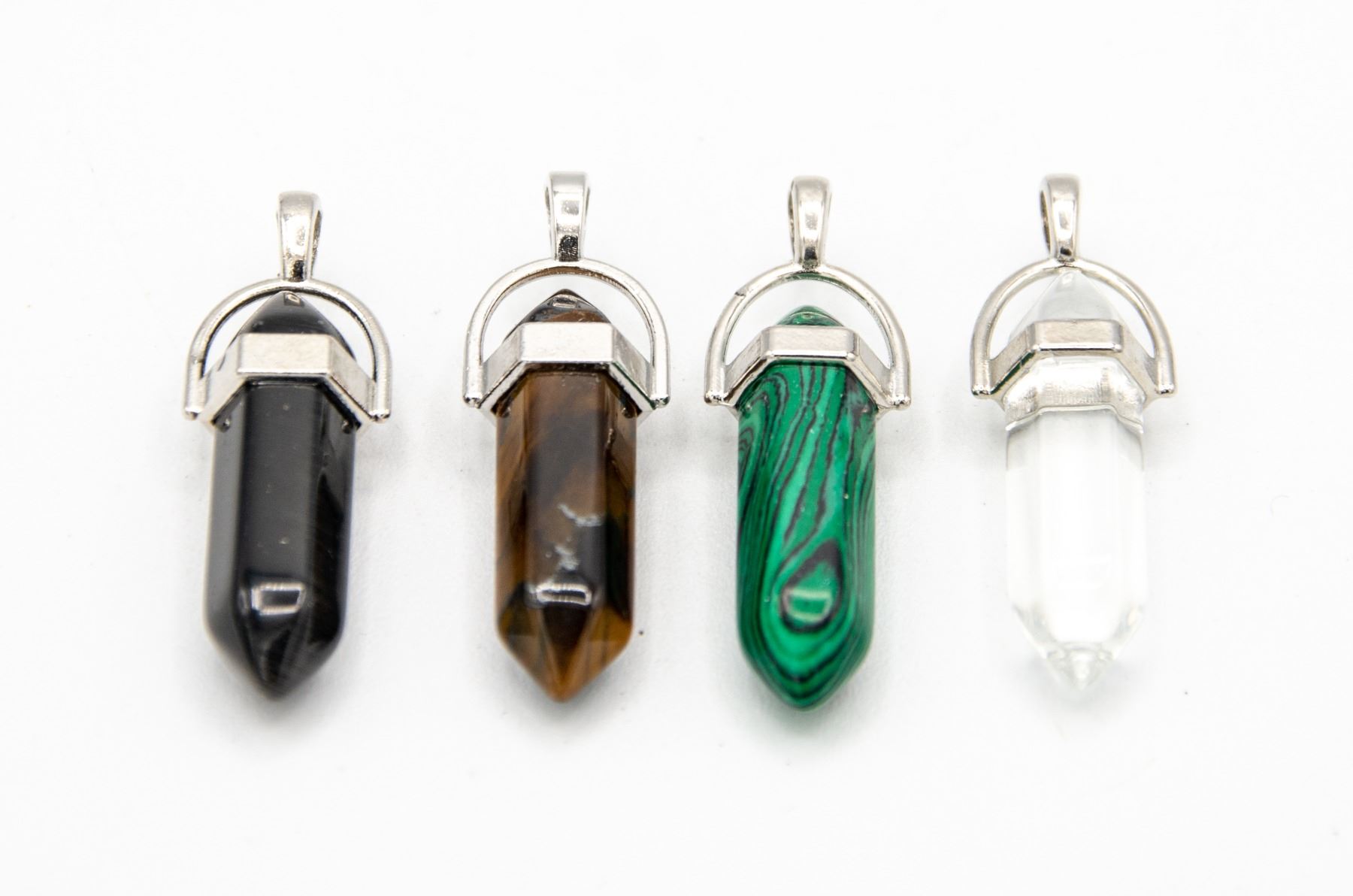 4 NEW GEMSTONE PENDANTS TIGERS EYE, MALACHITE,