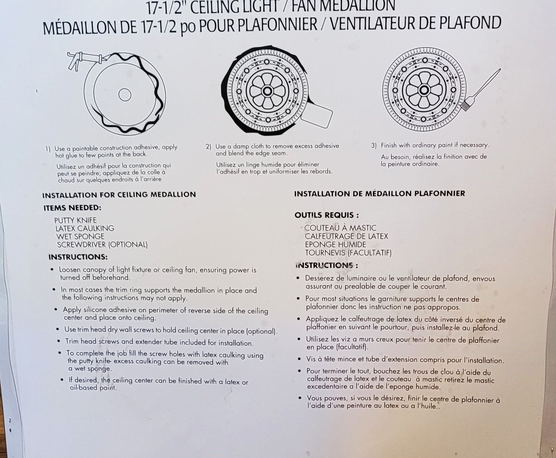 DIAMETER CEILING MEDALLION FOR CEILING LIGHTS & FANS. HOME DCOR