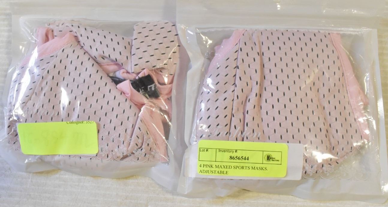 4 NEW PINK MAXED SPORTS MASKS. ADJUSTABLE