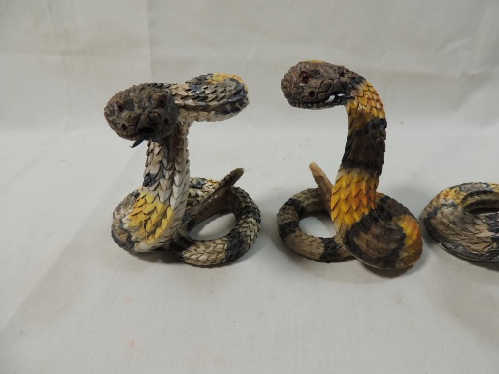 4 NEW ANGRY SNAKE FIGURE LIFE LIKE RESIN RATTLESNAKE FIGURINE. AS SHOWN. SEE PHOTO FOR MORE DETAILS.