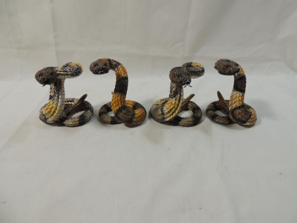 4 NEW ANGRY SNAKE FIGURE LIFE LIKE RESIN RATTLESNAKE FIGURINE. AS SHOWN. SEE PHOTO FOR MORE DETAILS.