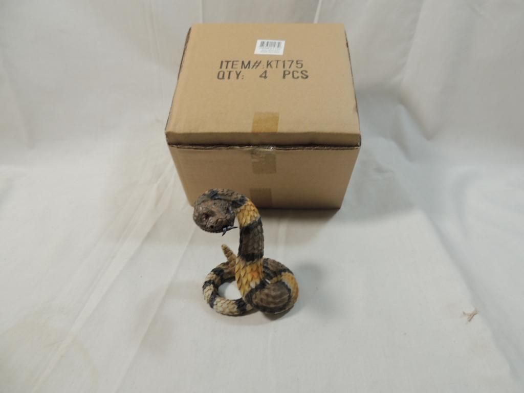 4 NEW ANGRY SNAKE FIGURE LIFE LIKE RESIN RATTLESNAKE FIGURINE. AS SHOWN. SEE PHOTO FOR MORE DETAILS.
