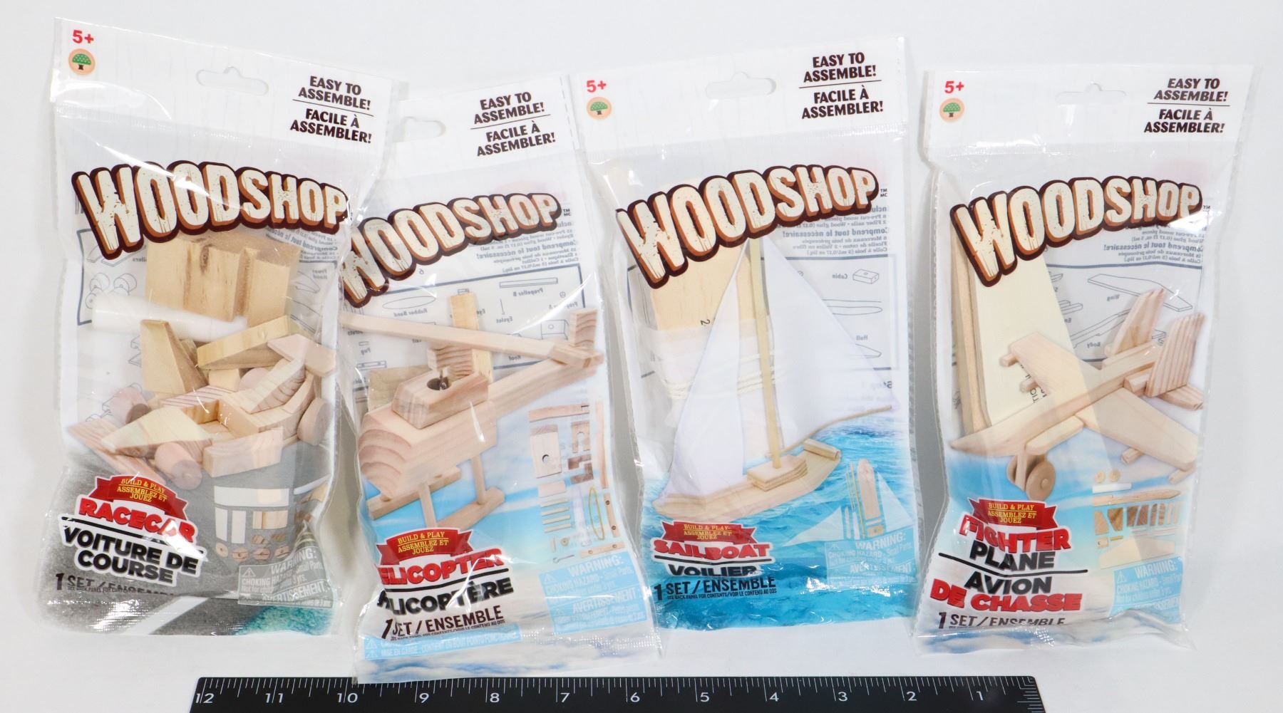 4 NEW WOODSHOP BUILD AND PLAY CRAFT KITS