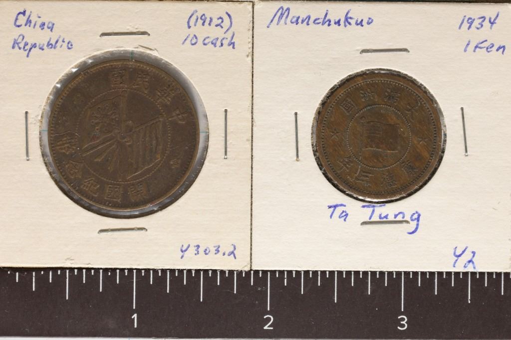 HSU 1 CHIEN'S (EXTRA FINE'S+-AU'S), 1934 MANCHUKUO TA TUNG 1 FEN (AU) AND 1912 CHNA REPUBLIC 10 CASH (EXTRA FINE)