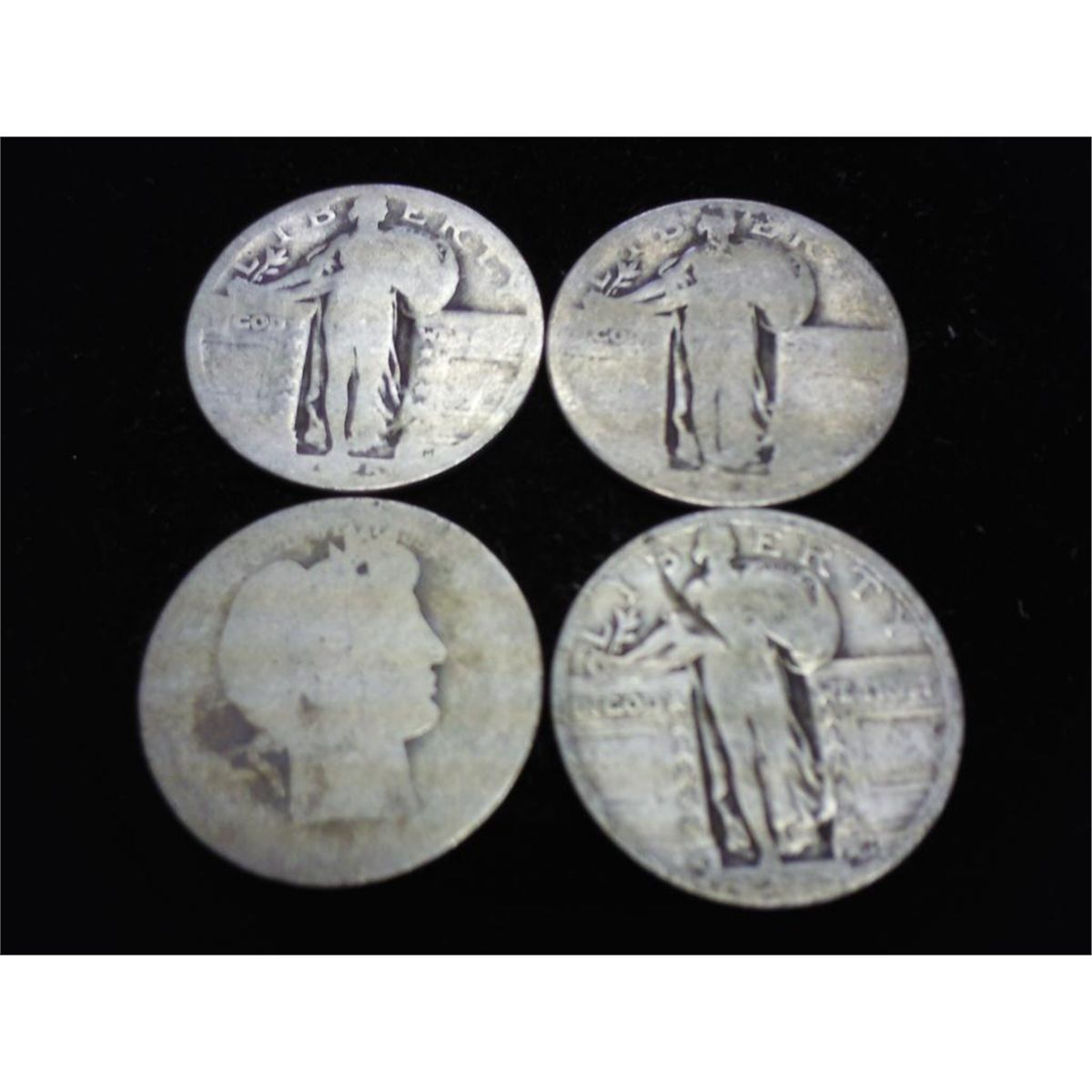 4 NO DATE SILVER QUARTERS 1-BARBER & 3-SLQ'S