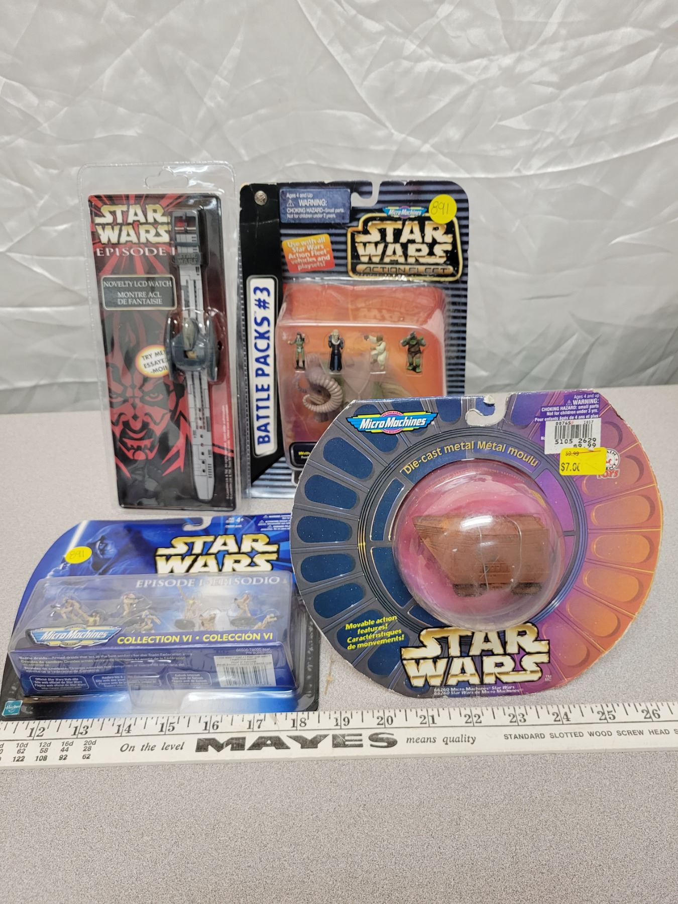 4 NOS Star Wars toys in packaging