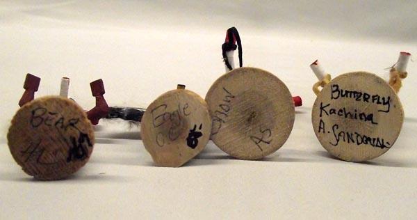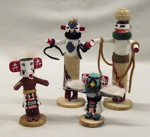 4 Native American Miniature Kachinas. Eagle, Butterfly by A. Sandoval, Snow and Bear. Largest measures approx. 4'' x 2''. Snow Kachina as nose damage. Buyers Pay Actual Shipping and Handling Charges(see terms and conditions for more information).