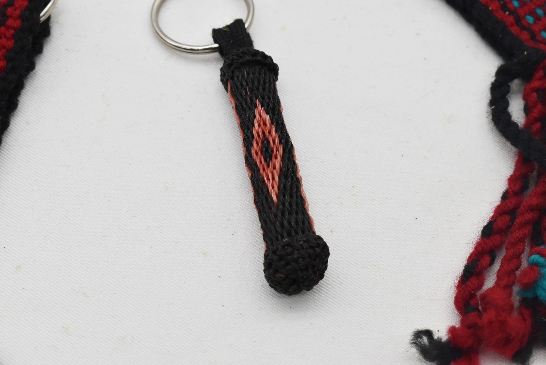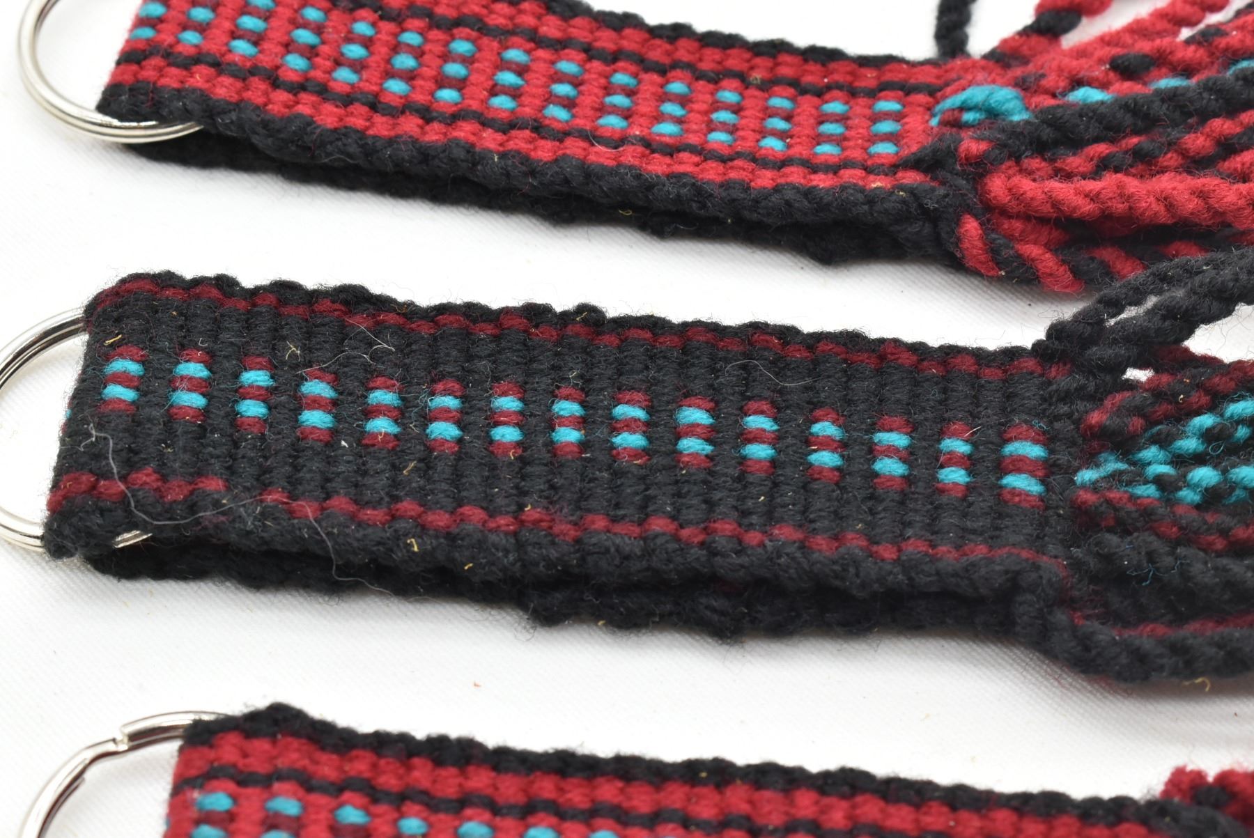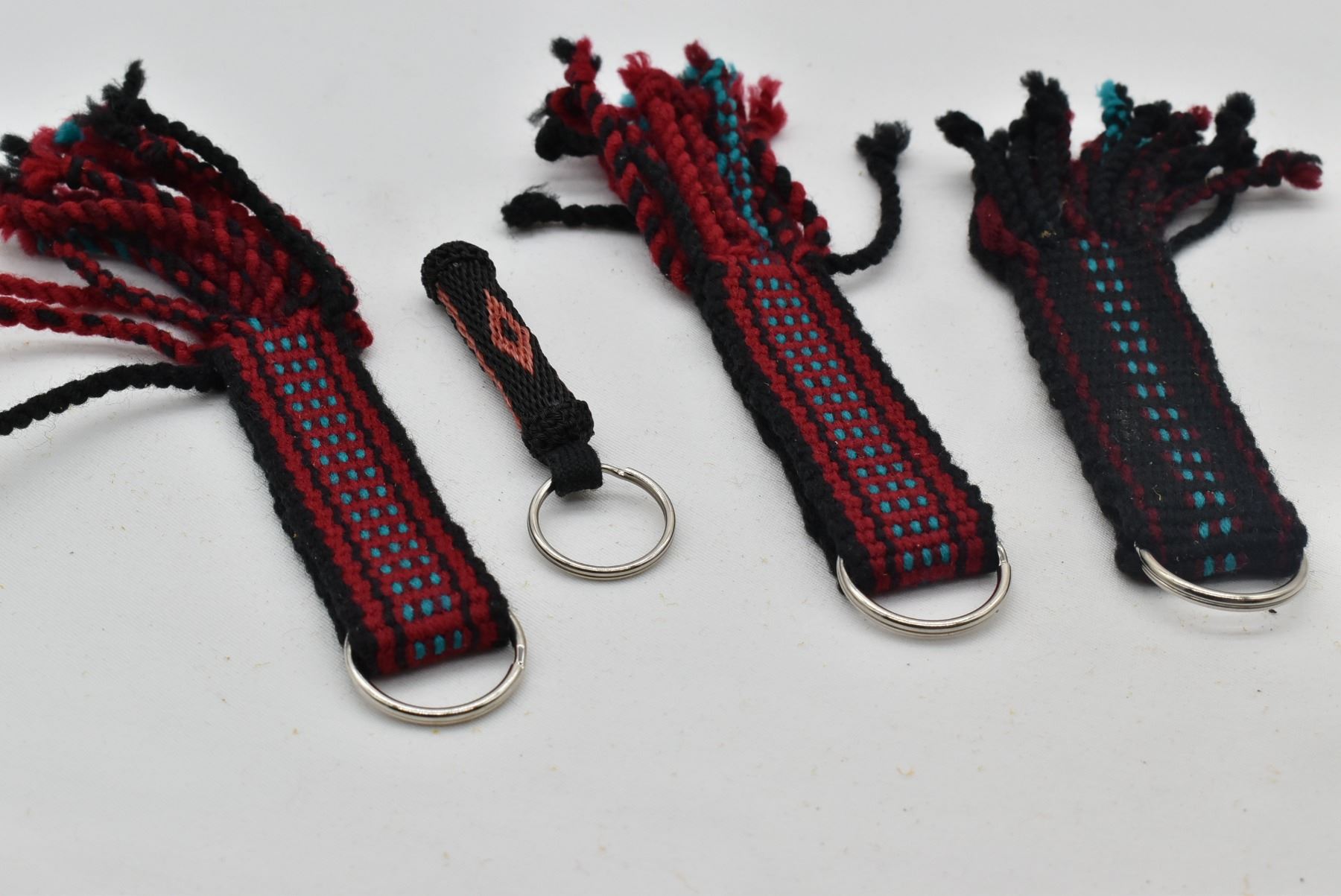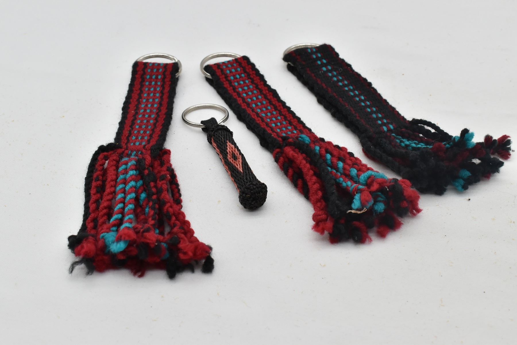 4 Native American Navajo Keyrings, includes 3 woven textile keyrings and 1 horse hair keyring