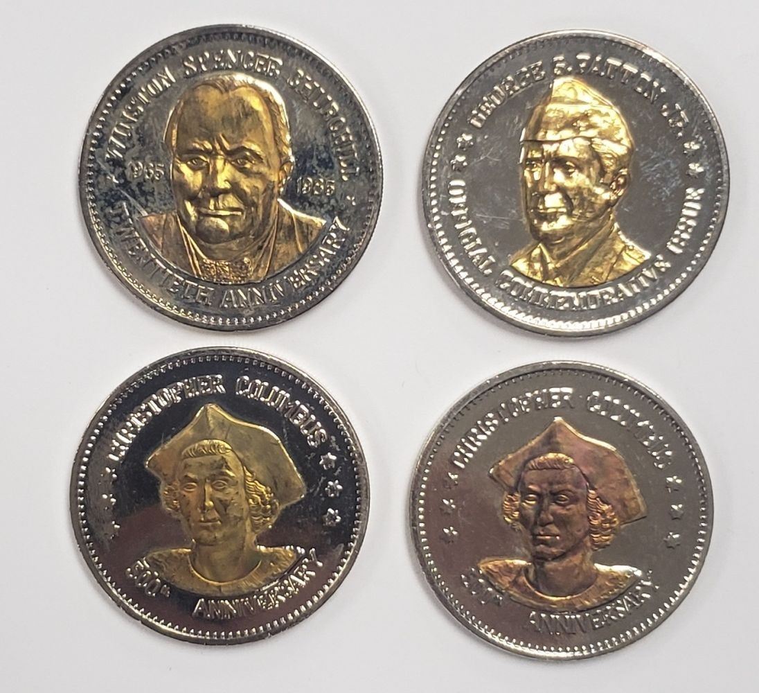 Gold Enhanced Commem Coins - 2-Columbus, 1-Patton, -Churchill