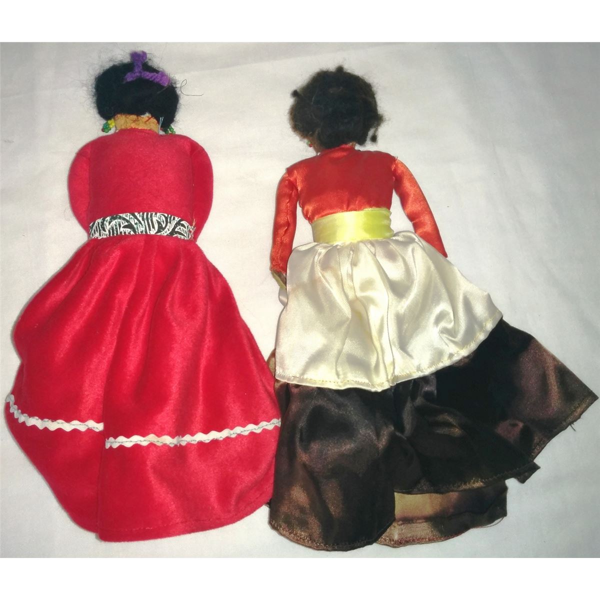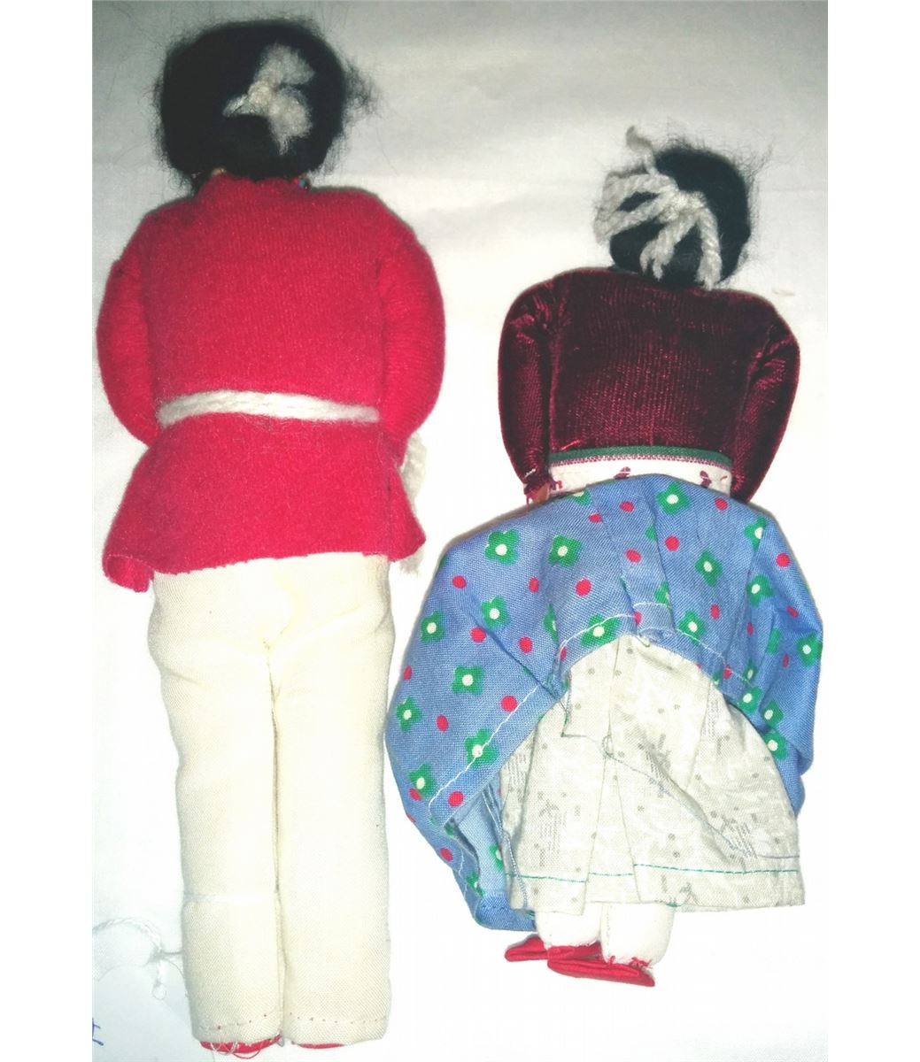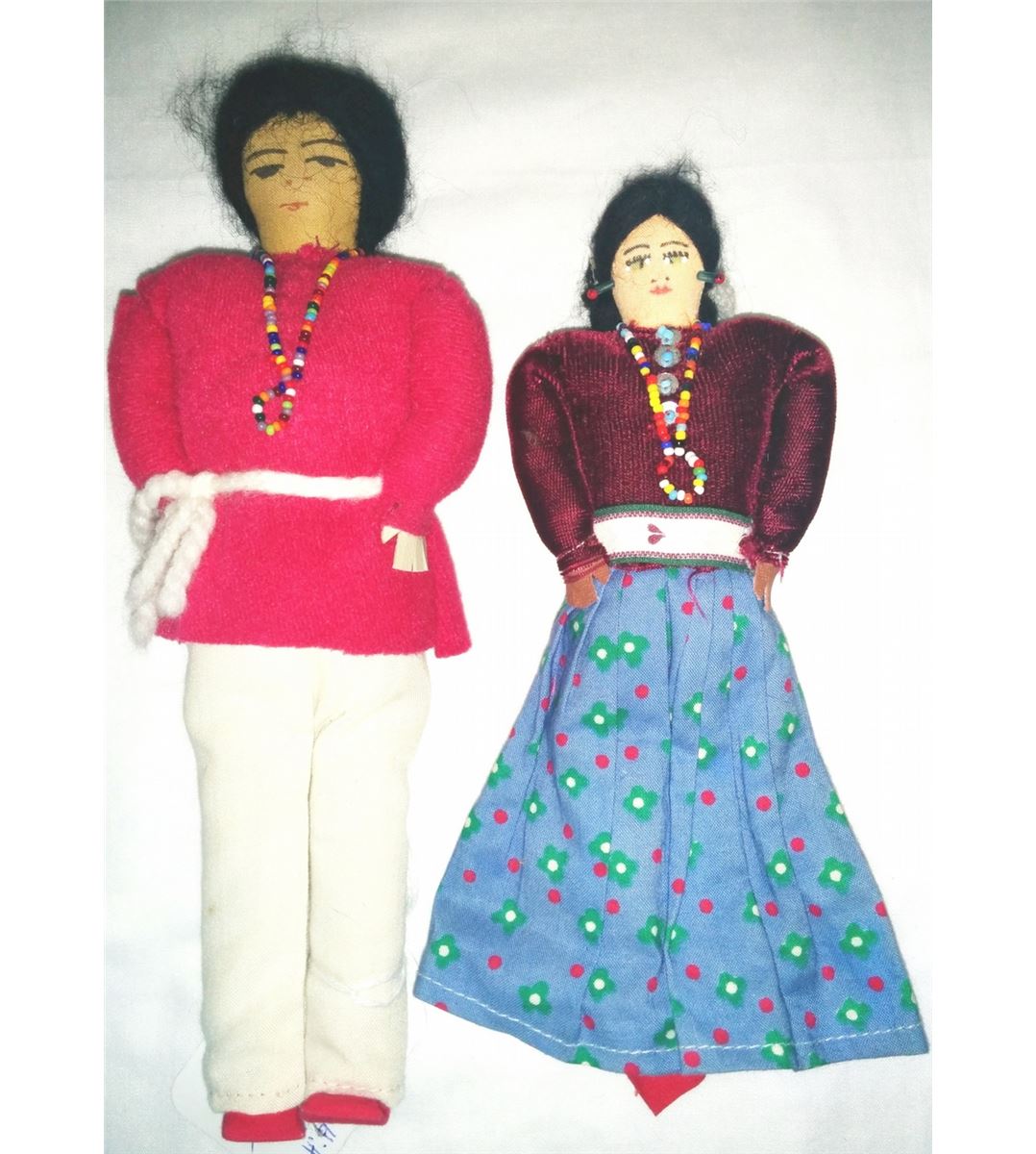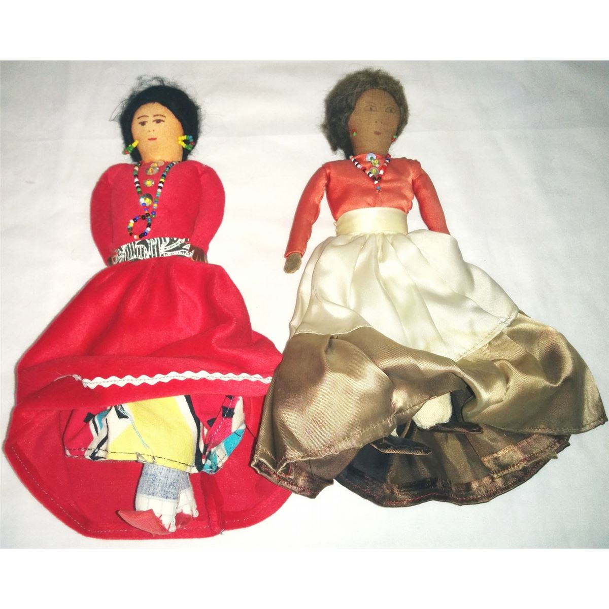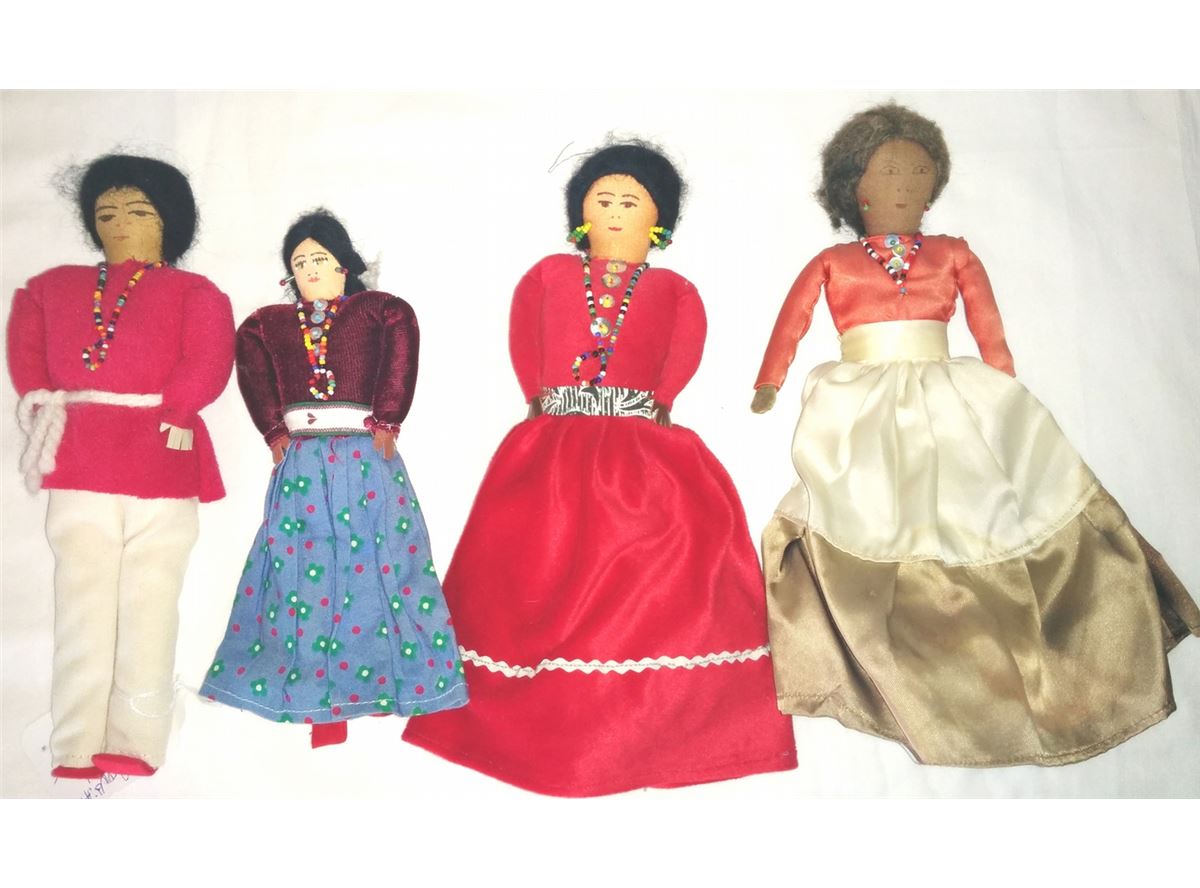Four Navajo cloth Indian dolls from the 1950s. Navajo dolls are approx. 8", 9" and 10 " tall with beaded necklaces and earrings. Condition: Good condition. Shipping: $18.00