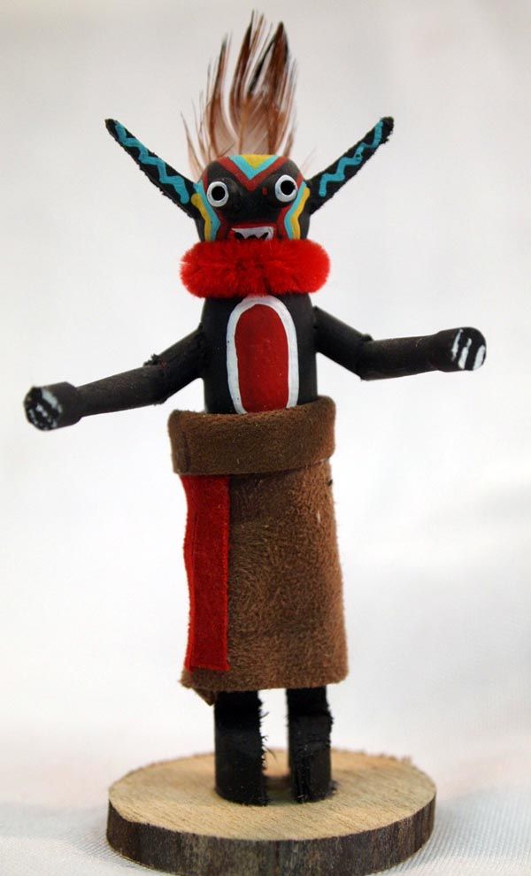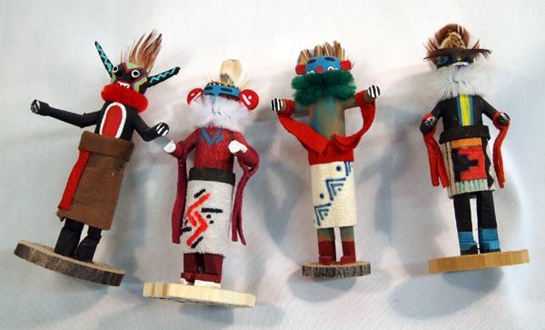 4 Native American Navajo Miniature Kachinas. Some are signed. Tallest measures approx. 4''H. Some feather damage.