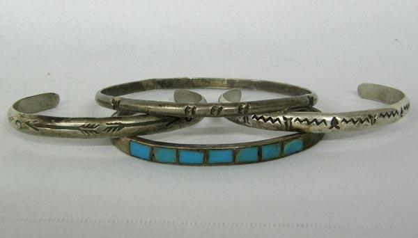 4 Navajo Silver Cuff Bracelets, largest measures approx. 6 1/3''. SHI $15.