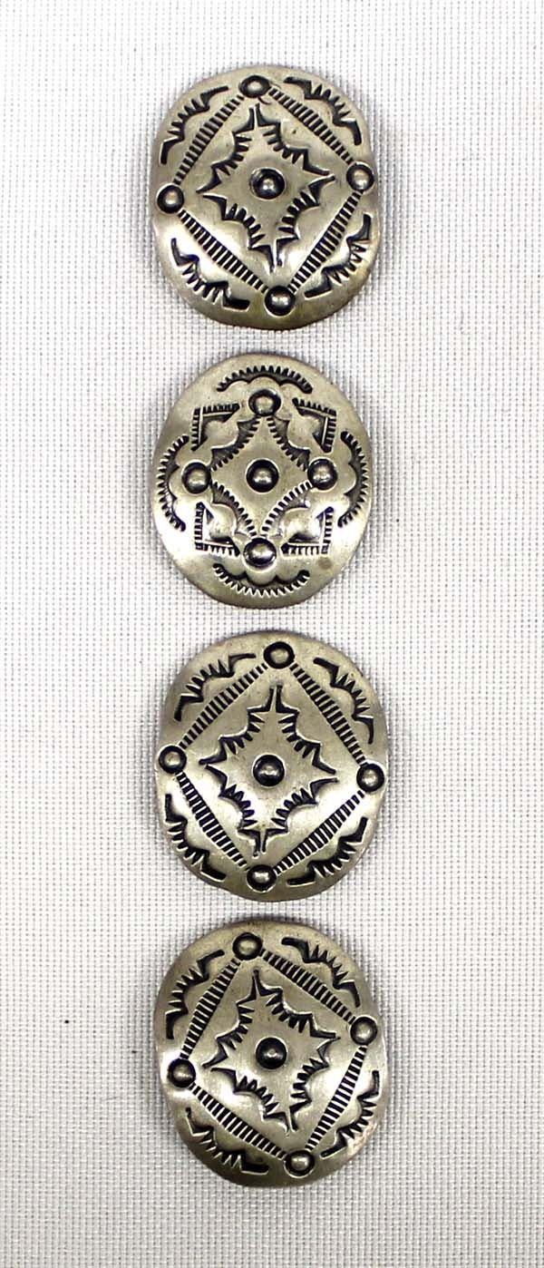 4 Native American Navajo Sterling Silver Conchos, hand stamped details, each measures .75'' x 1''