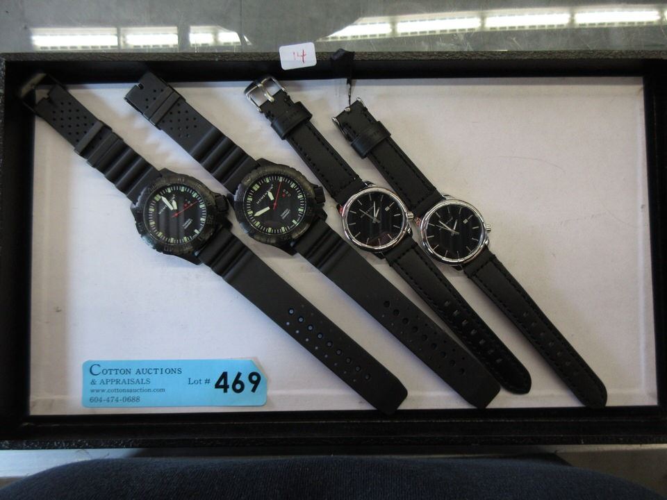 2 Men's Torpedo water resistant watches with rubber straps and 2 Women's C Series watches with leather straps.