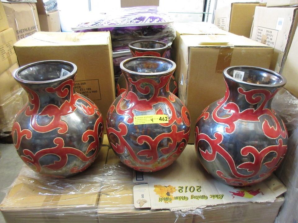 4 New Oversize Red & Black Ceramic Vases