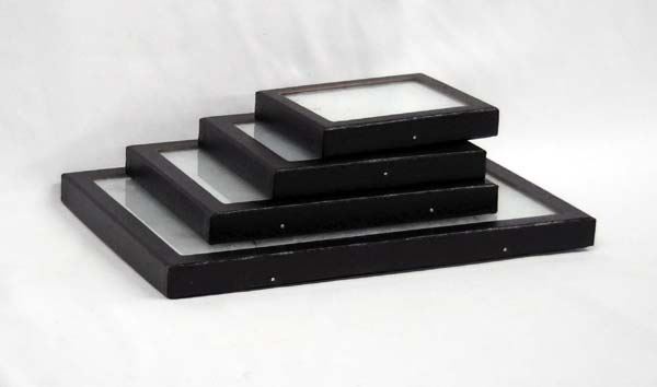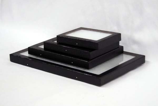 4 New Riker Display Boxes, 5.25''L x 4.25''W, 6.25''L x 5.25''W, 8.25''L x 6.25''W, and 12.25''L x 8.25''W