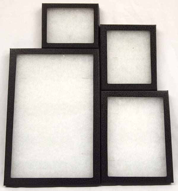 4 New Riker Display Boxes, measures 4'' x 5.5'', 5'' x 6.5'', 6.5'' x 8.5'', 8'' x 12.5''
