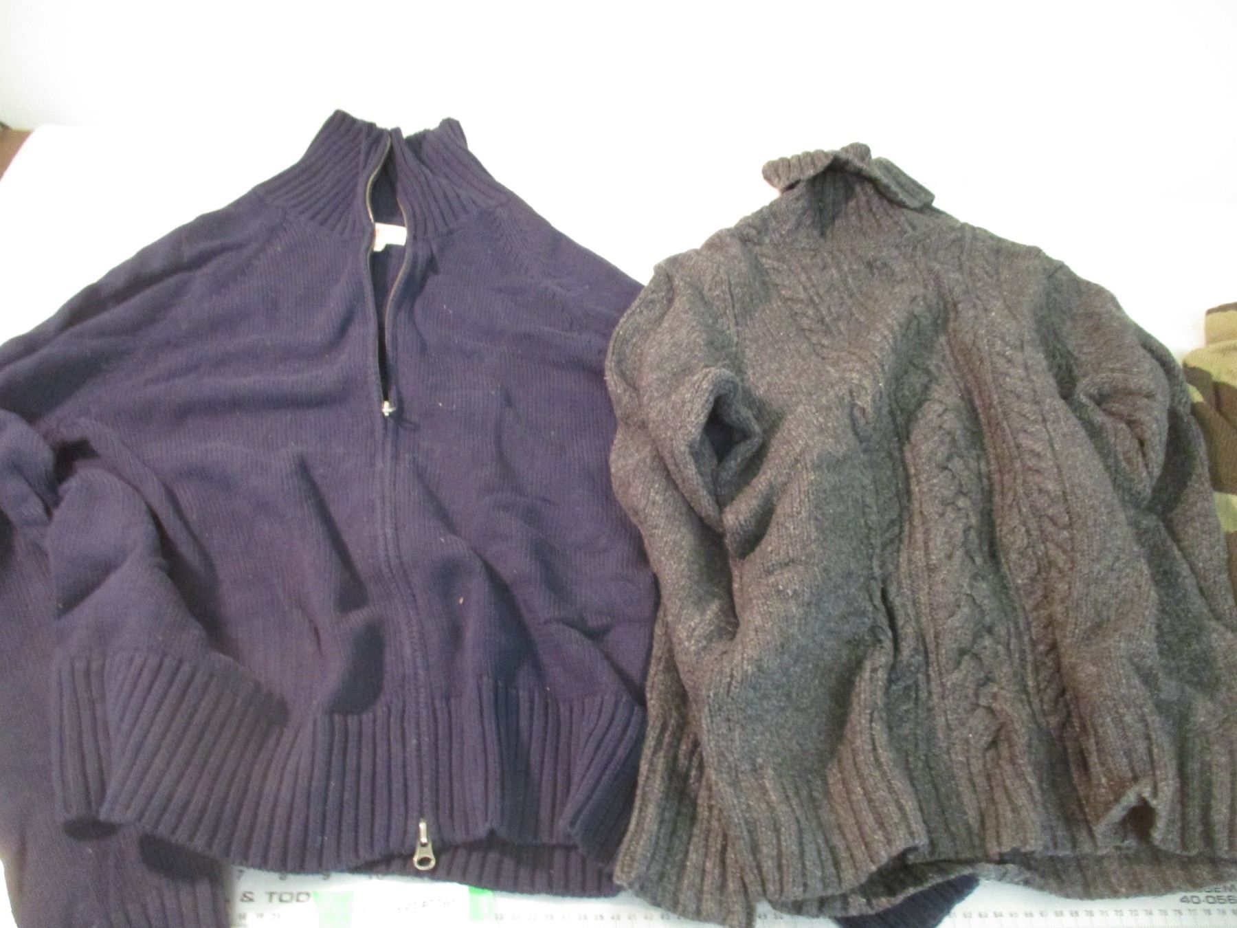 (4) Newer heavy wool sweaters + bunnyhug (medium, small)