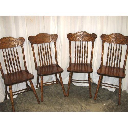 <tr><td>Title:4 Nice Detail Carved Pressed Back Oak Chairs</td></tr>