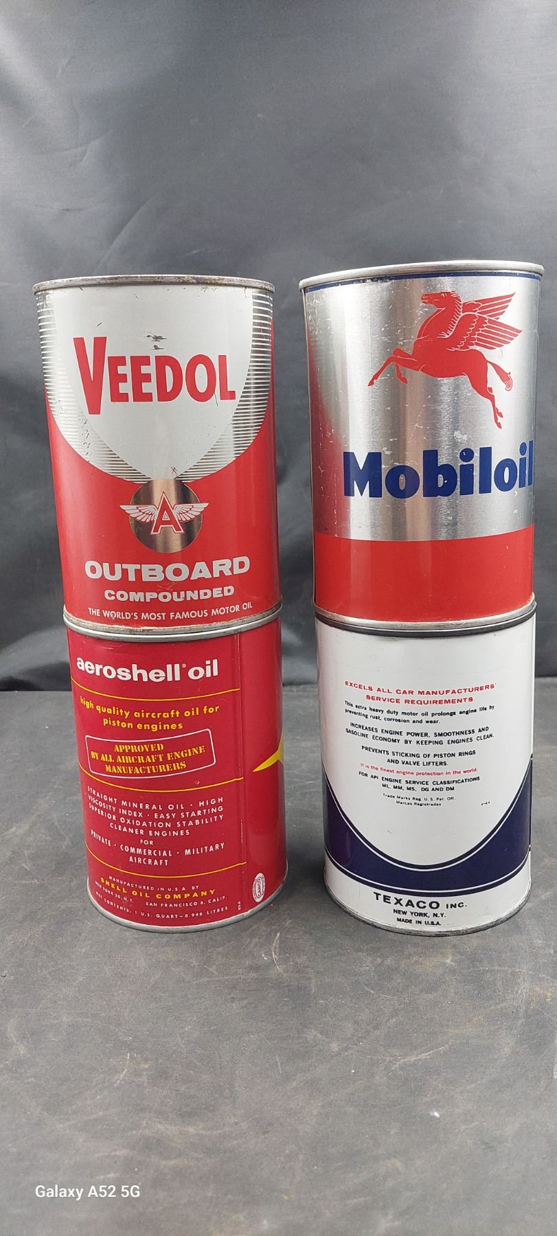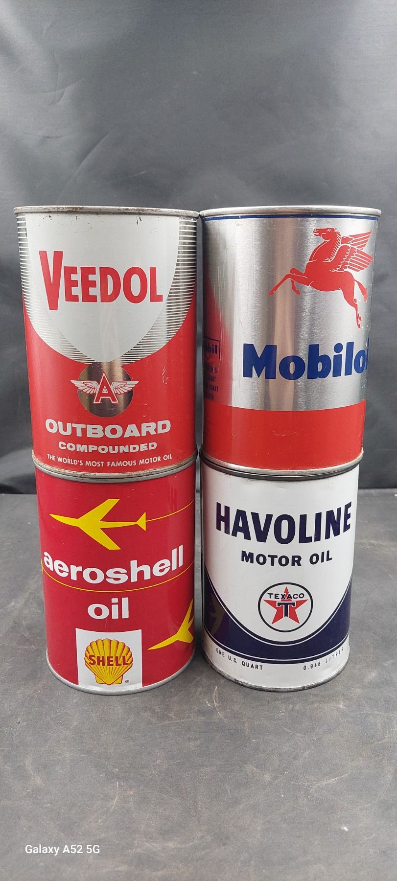 4 Nice condition Veedol, Shell, Mobile iol and Valvolive U.S. quarts 3 full