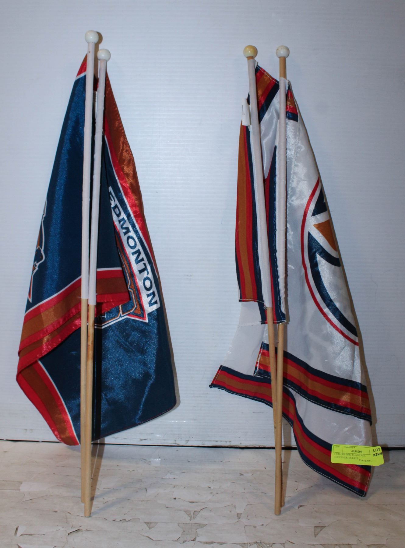 4 OILERS NHL FLAGS ALL TOGETHER-ESTATE