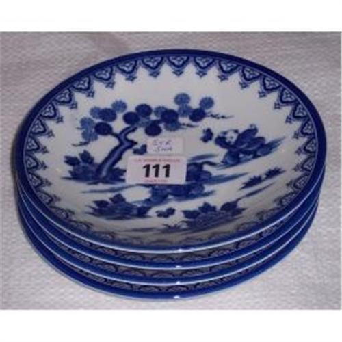 4 ORIENTAL PATTERNED BLUE AND WHITE PLATES