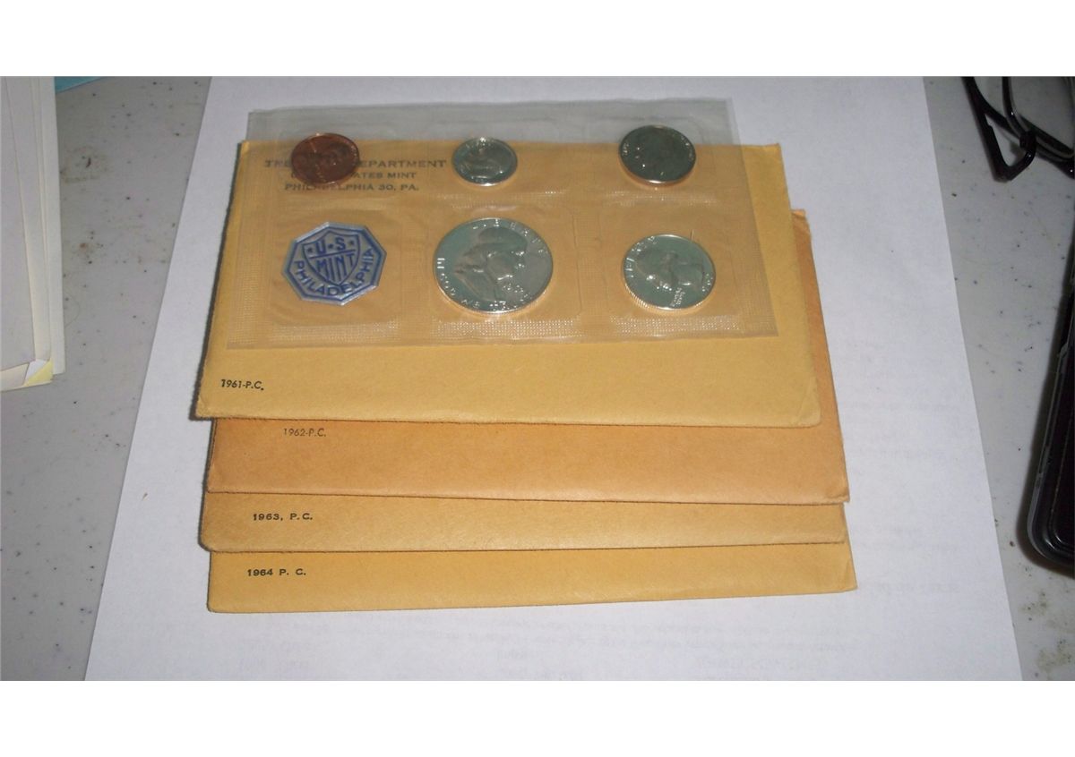 4 ORIGINAL MINT 90% SILVER SETS, 1961 TO 1964