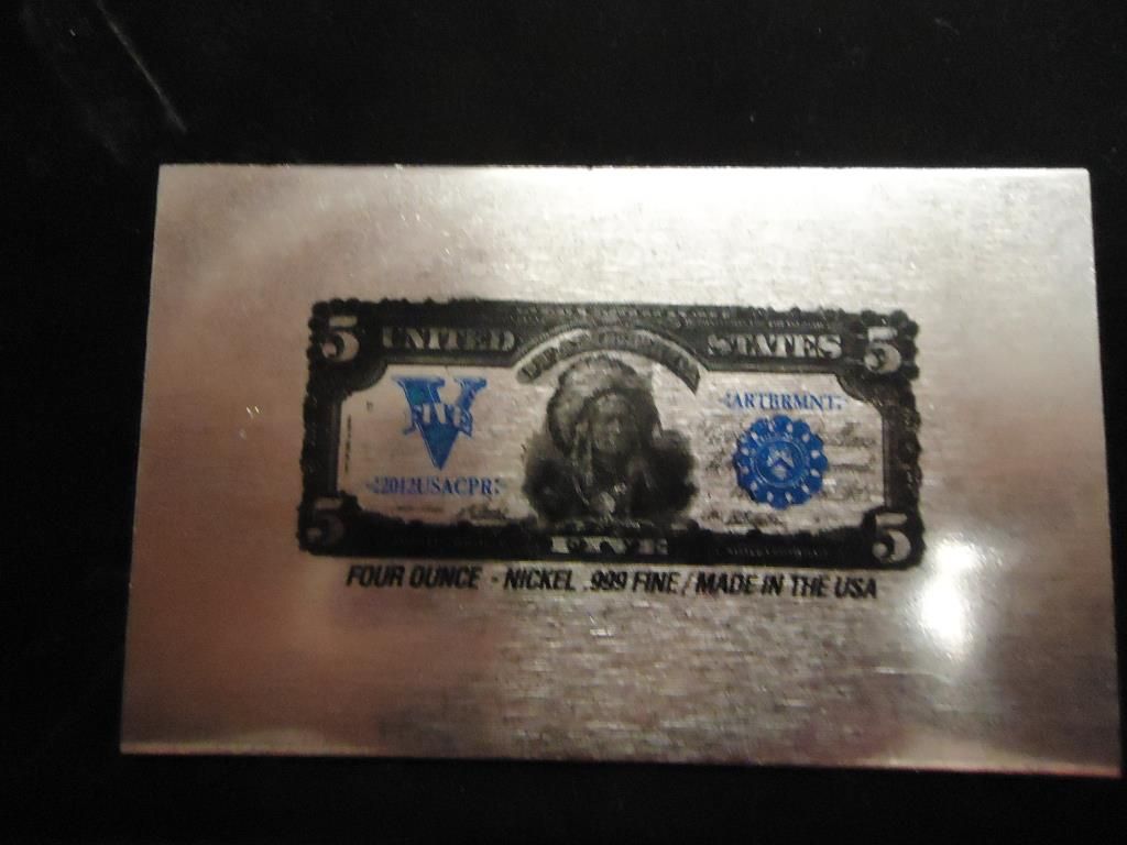 4 OZ. .999 NICKEL BAR ($5 INDIAN BANK NOTE)
