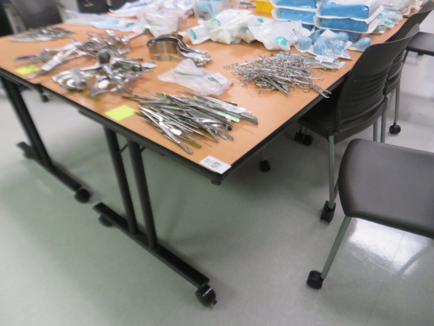 4-Oak Top Black Base Rolling Work Tables - 4 X $