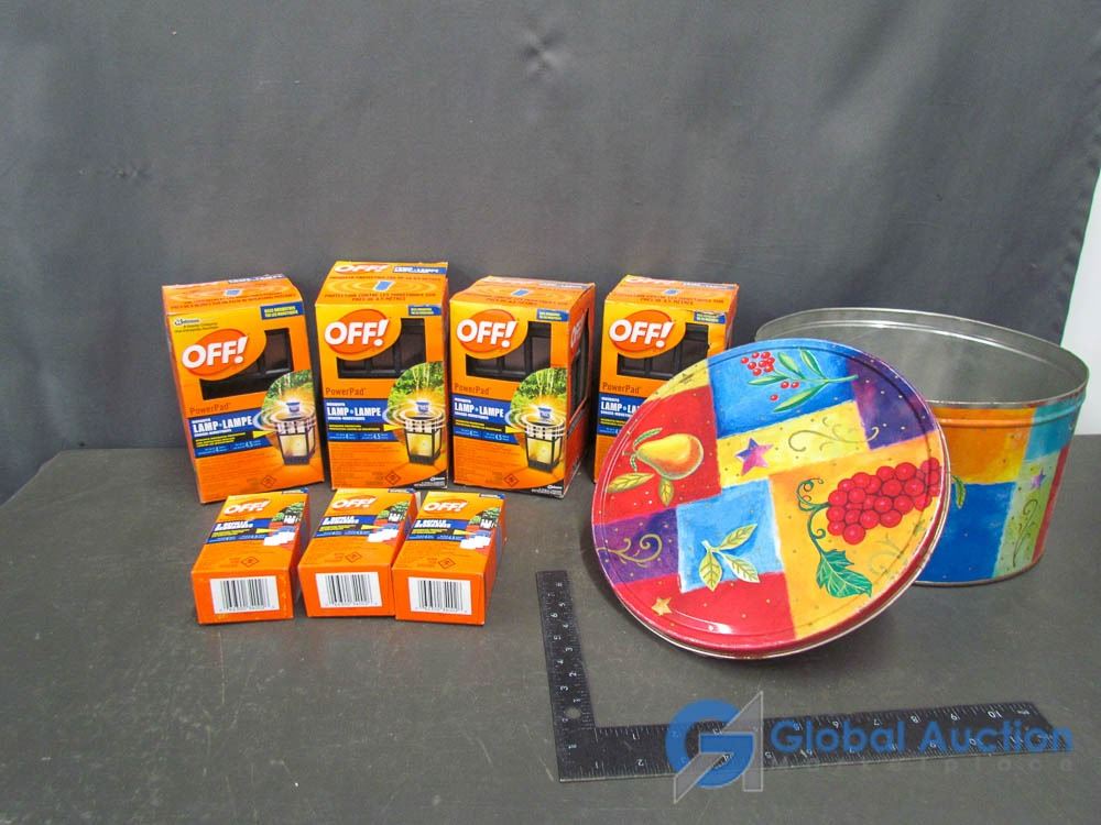 (4) Off Lanterns, (3) Refill Boxes and Tin