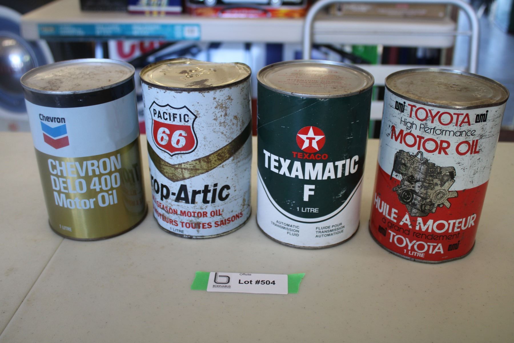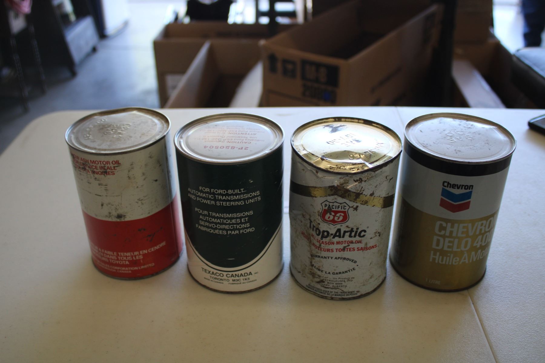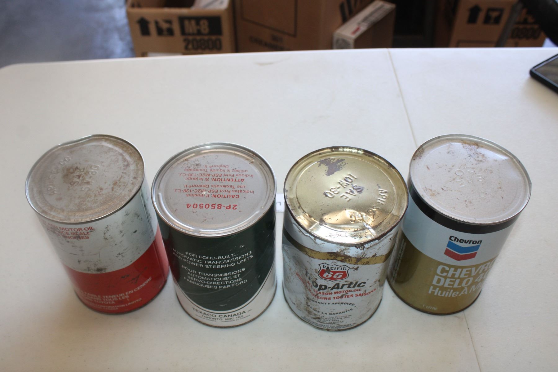 (4) Oil Cans - Chevron, Pacific 66, Texamatic, Toyota