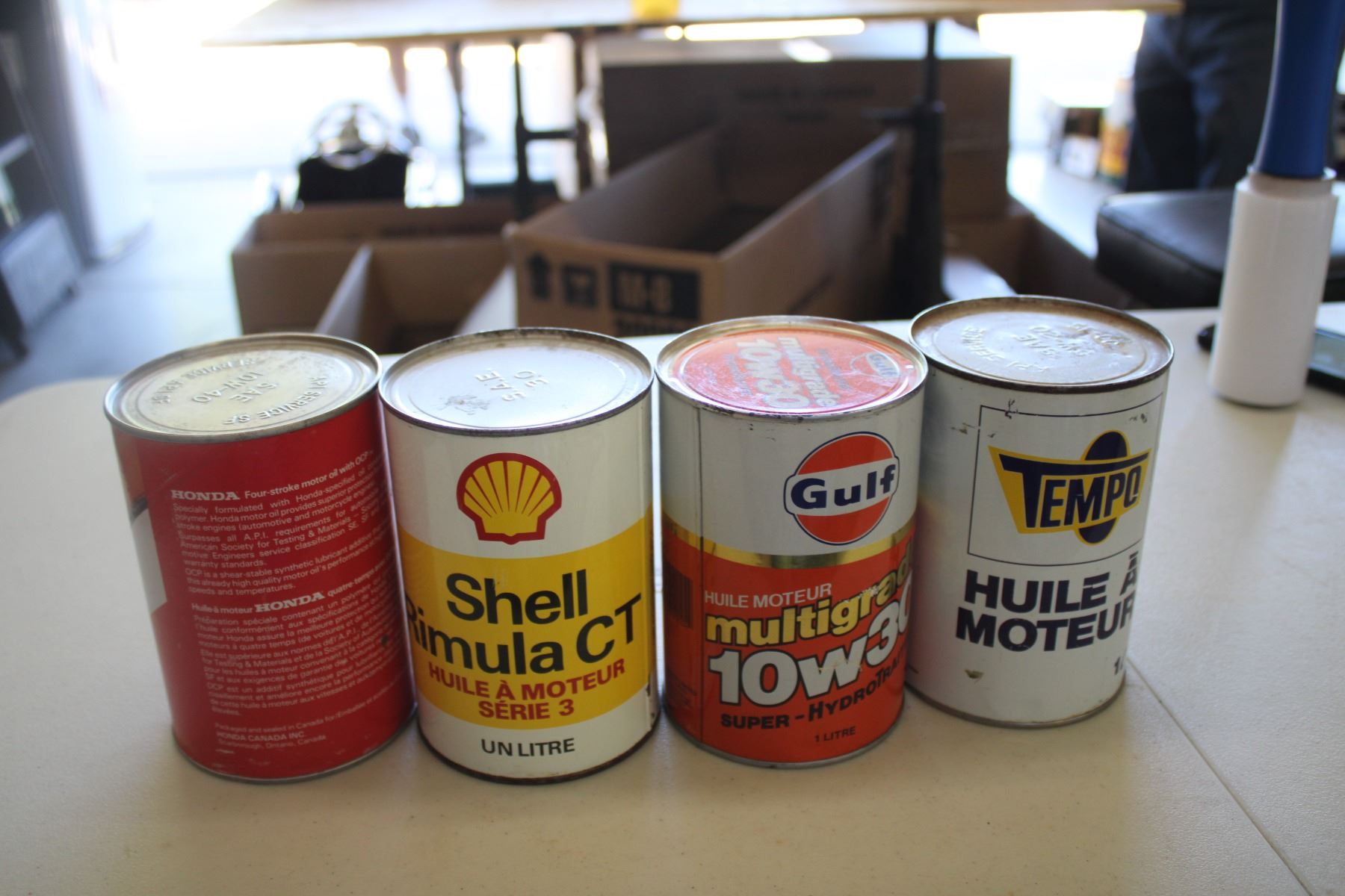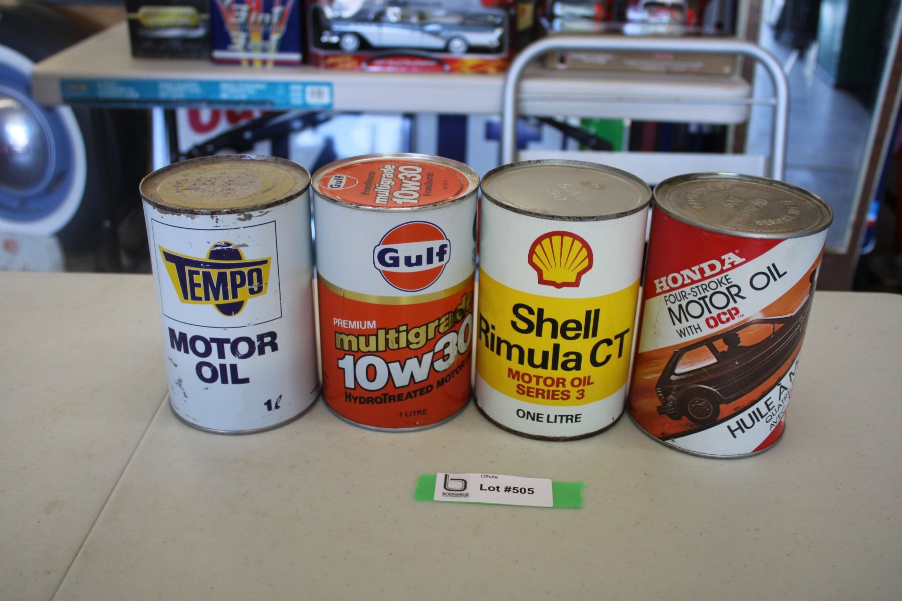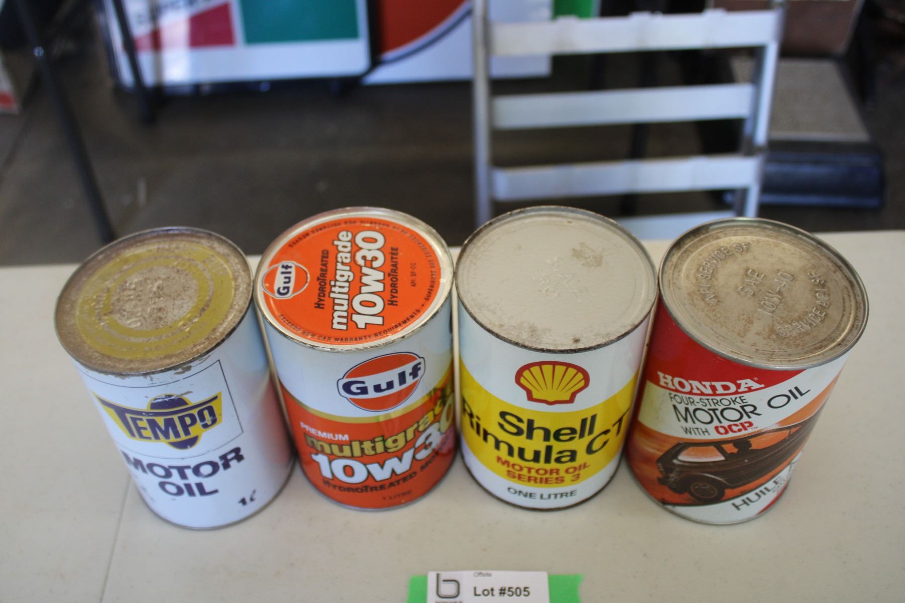 (4) Oil Cans - Tempo, Gulf, Shell Rimula, Honda