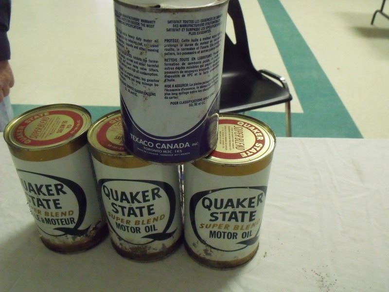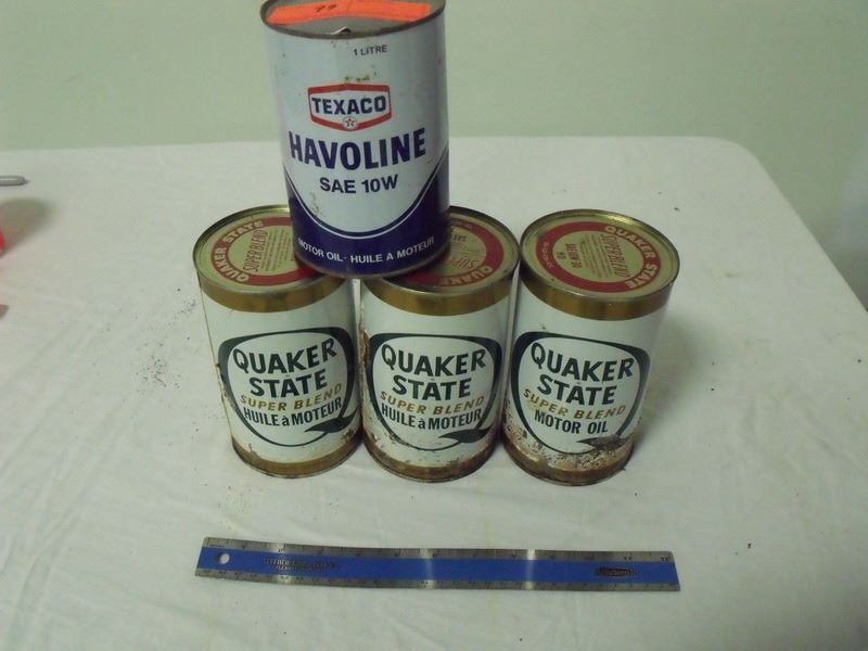 3 Quaker full, one texaco litre empty