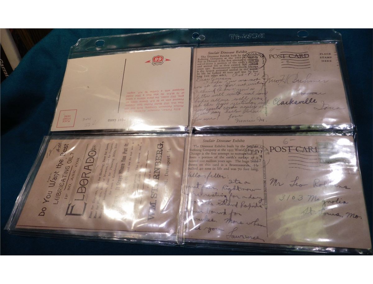 (4) Oil or Gas related Post Cards. Phillips 66 “Billy Parker” Bi-plane; “The Fairies Say – Use Eldorado Engine Oil”; & (2) Different Sinclair Dinosaur Exhibit Post cards.