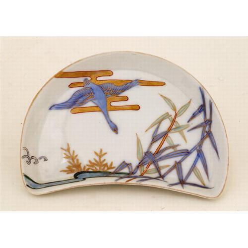 <table width="100%" border="0" cellspacing="0" cellpadding="4"><tr><td><em> </em></td></tr><tr> <td width="100%"> 4 Old Japanese Imari Half Moon Shape Plate with Flying Goose