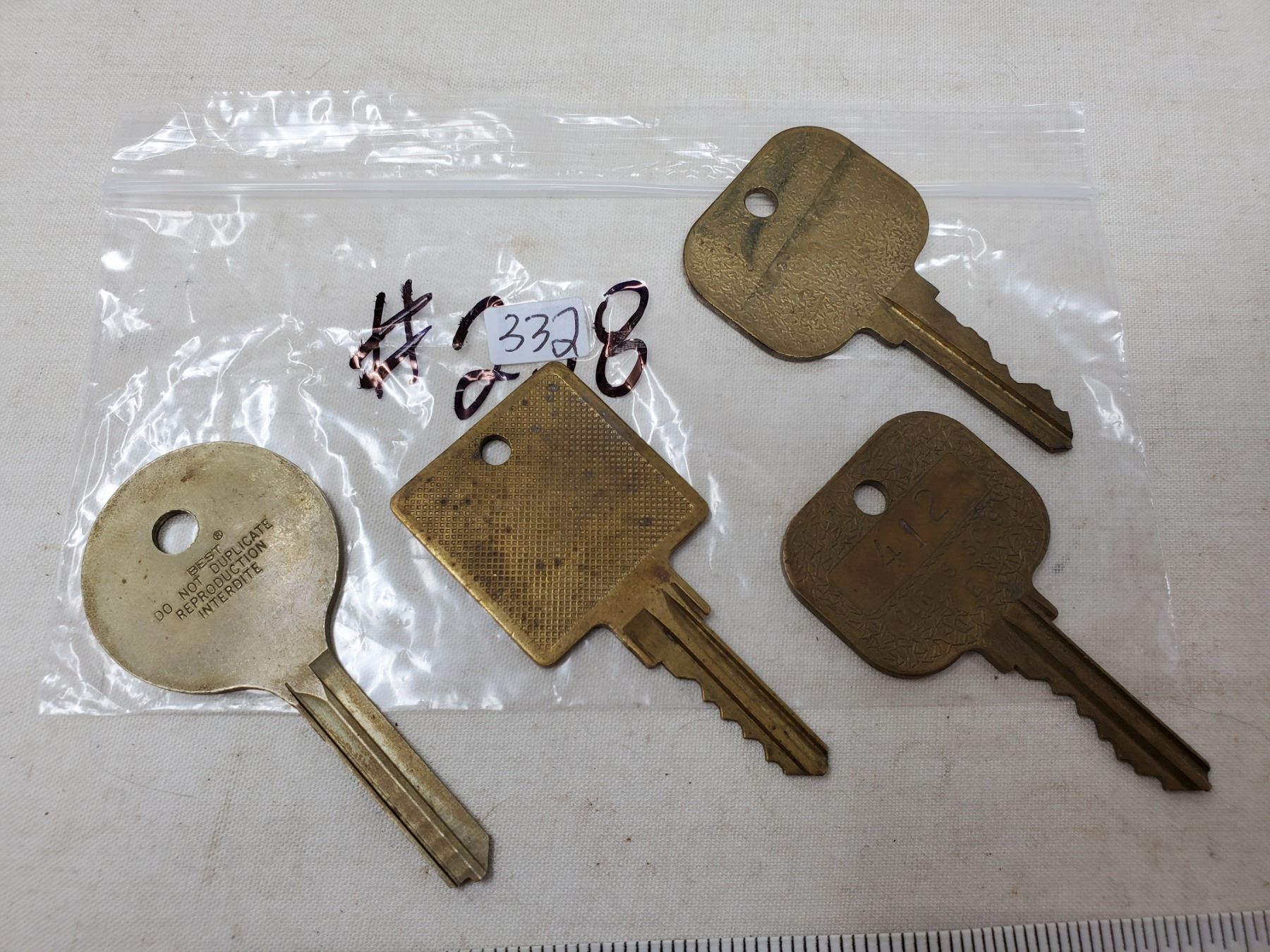 4 Old Large Motel Room keys(1-is blank),4-keys