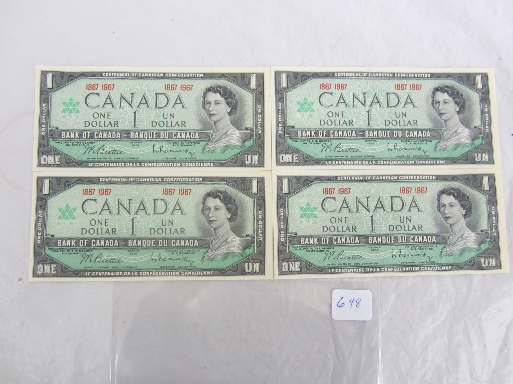 4 One Dollar Bills 1867-1967 Crisp