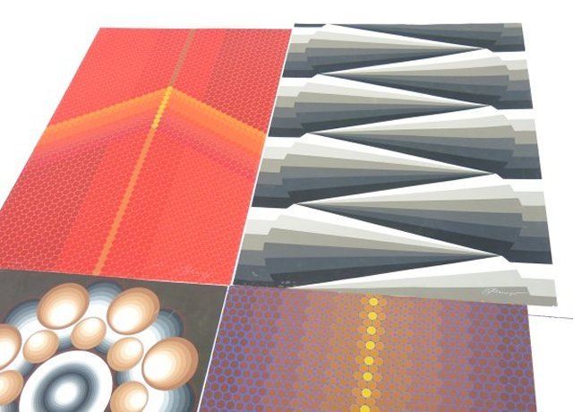 Signed illegibly & numbered. Various styles & sizes Wear to edges. Scratches to one.