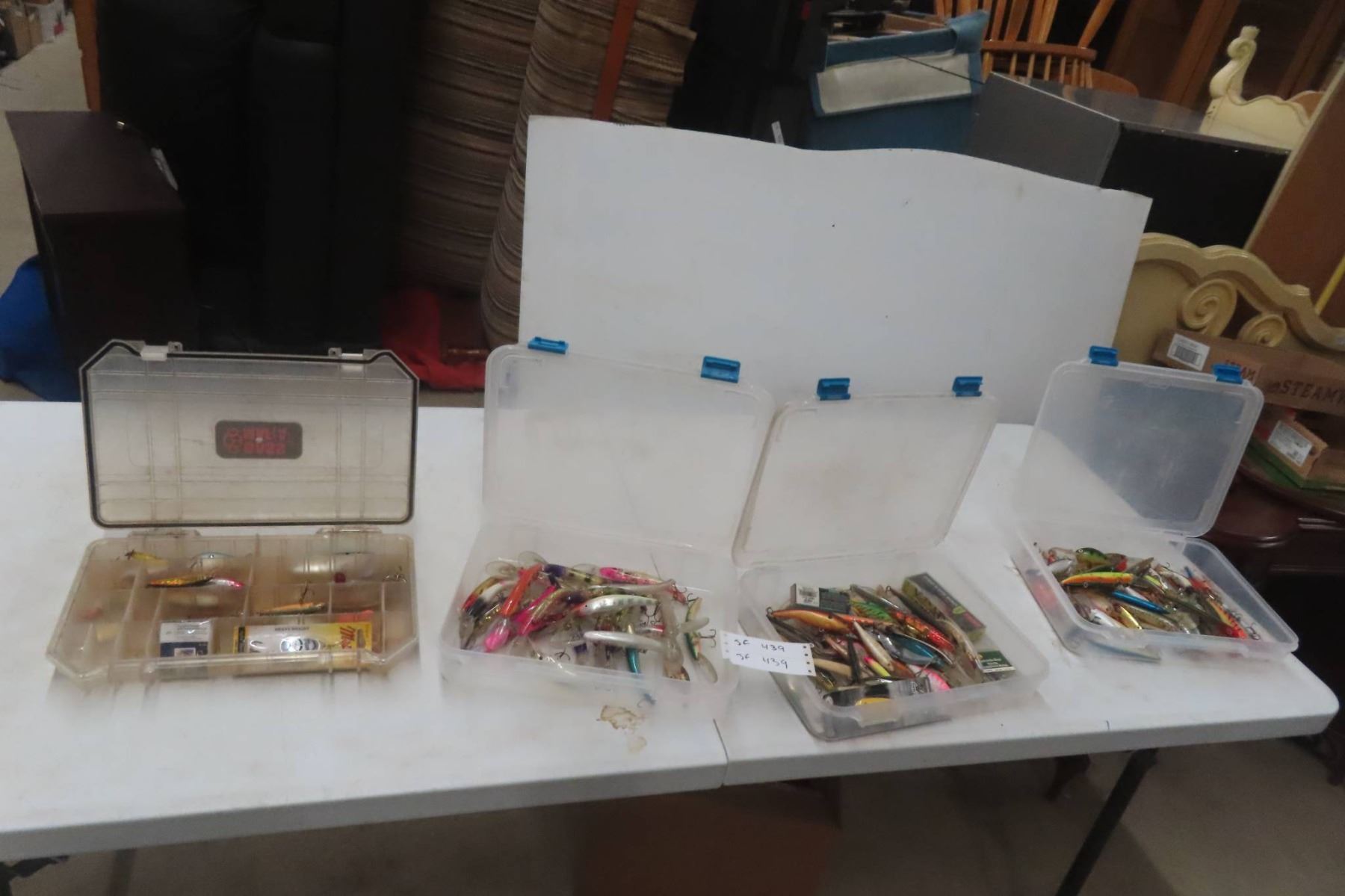 4 Organizers Full of Fishing Lures and Hooks