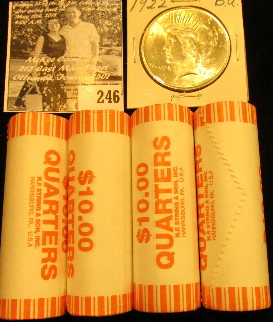 (4) Original BU Bank-wrapped Rolls of 2006 D Nevada Statehood Commemorative Quarters; & 1922 P U.S. Peace Silver Dollar, Gem BU. (total face value $41.00).