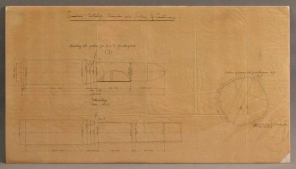 Martini Henry Cartridge Patent Drawing; Gras Gun French Model 1874 Chamber Printers Proof, (18-1/2" x 17"); 2-Cross Section of Rifle Cartridge.